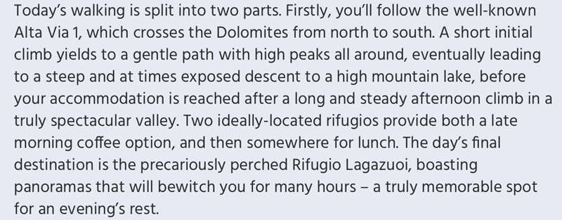 Although Colletts show the route from Ucia Lavarella to Rifugio Lagazuoi, the next stage is along the Setsas Line to Corvara, and since this starts at Rifugio Valparola it seems better to end Stage 4 theer. I have done Forcela di Lech / Rifugio Lagazuoi twice before, so the route to Rifugio Valparola would be breaking new ground. It also gives the opportunity to see Capanna Alpina nd Rifugio Scotoni. This route is outlined in blue below.