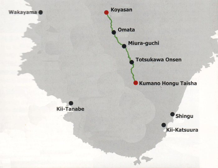The Kohechi route starts in the north at Koyosan and links to the Nakahechi route via a mountainous trail.
