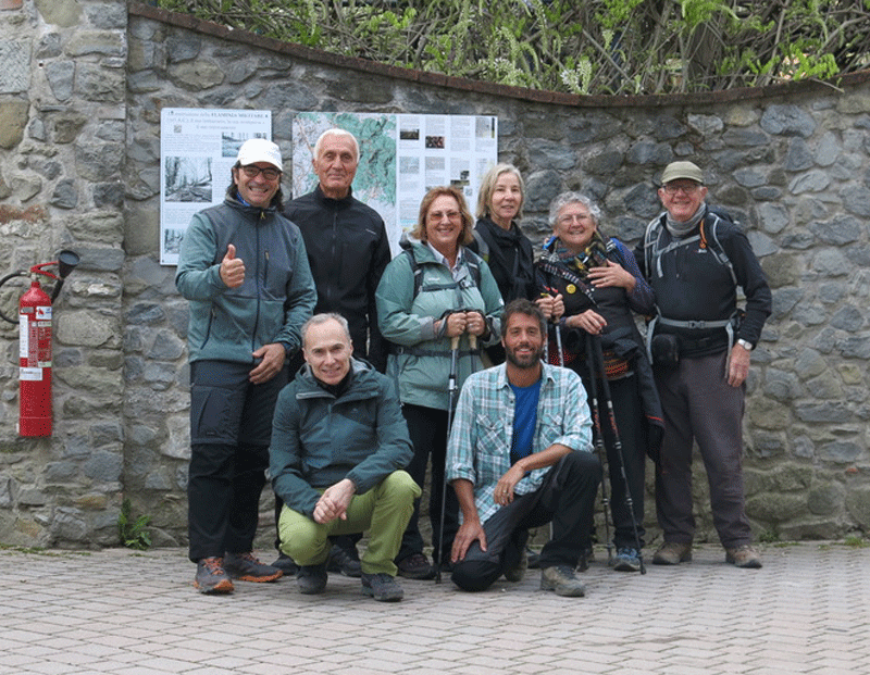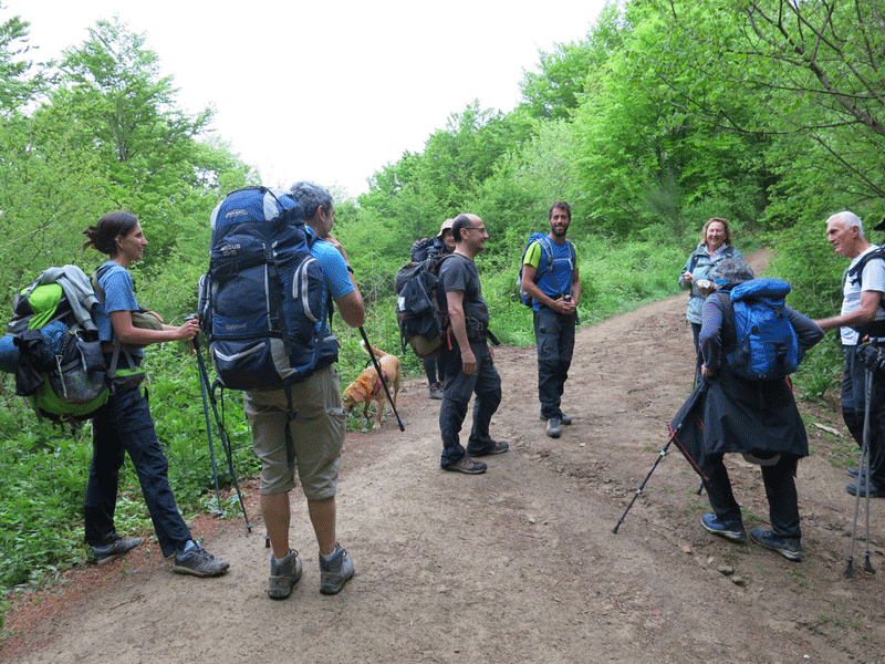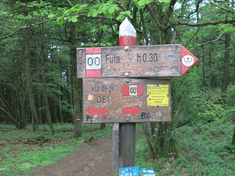 0.96 km in 4H45 to this point. Originally the path went straight on, but due to objections from a landowner the straight route can no longer be used. This leaves the alternative of turning left through Sant' Agata or right through Galliano