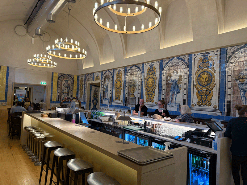 Leaving the Miraduoro we walked down Rua de San Pedro de Alcantara, stopping for a snack at Chez Croissant. From here we turned into Rua Nova de Trindade and stopped by Cervejaria Trinidade, where we had eaten in 2007. Trindade is an historical monument: once a convent, it survived a major earthquake, recovered from two fires and bravely endured the passage of time. Today Trindade is renovated as a seafood and specialties brewery, bar and museum. We made a booking for dinner on the Wednesday night.