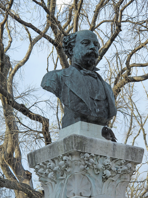 Monument to Eduardo Coelho, founder of the popular newspaper Diario de Noticias in 1864. He was founder of the popular newspaper Diario de Noticias in 1864. It features two bronze sculptures from Costa Motta and its complex base was produced by the architect Alvaro Machado. In addition to the bust of the journalist, there is a figure of an energetic boy in movement, a tribute to paperboys that crossed the city selling this newspaper. A bronze medal was added in 1914 for the commemoration of the 50 years of existence of the newspaper and features the effigy of Tomas Quintino Antunes, count of Sao Marcal, and co-founder of the newspaper in 1864.