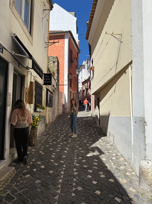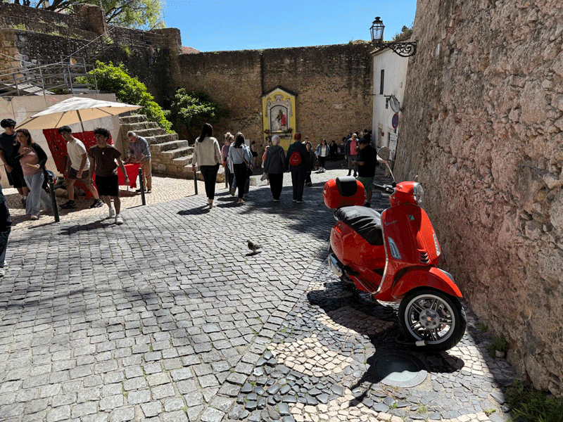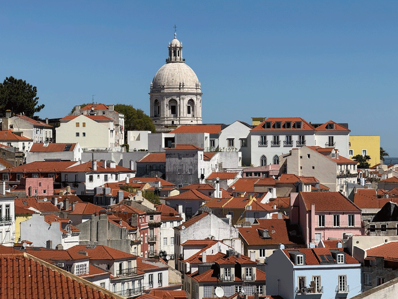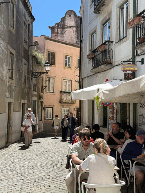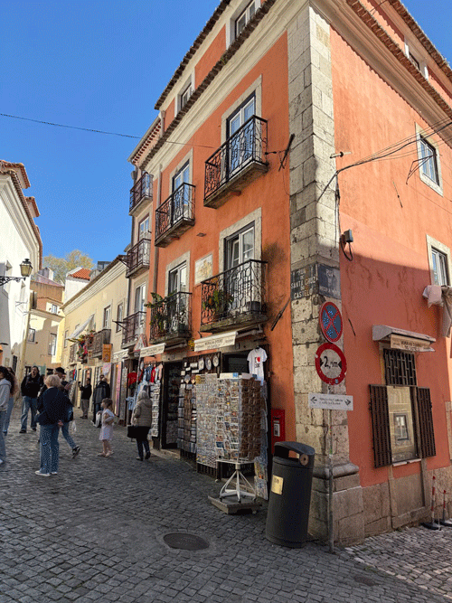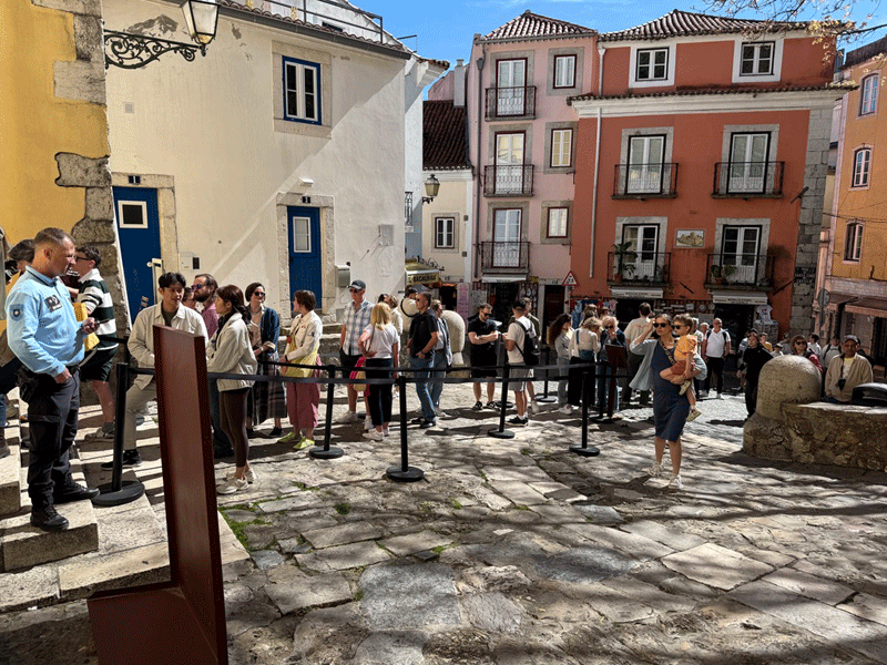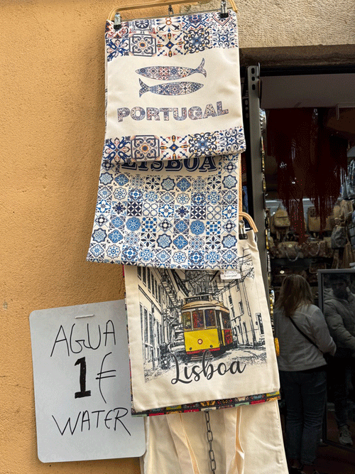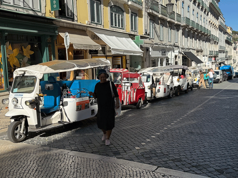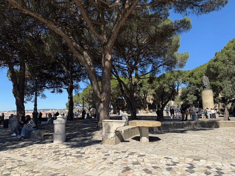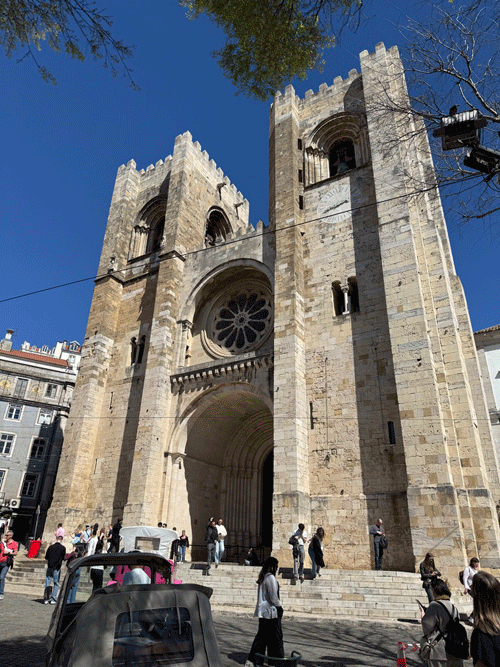 Today we visited Castelo de São Jorge. We walked down to the main square expecting to pick up Tram 28E, but unfortunately this tram stop had been temporarily suspended. The tram driver gesticulated that we should go further up the hill to another stop. We eventually found this stop, only to be met with a long queue for the tram. It was strange, as three trams were waiting to move on to this stop, but nothing was moving. It appears that the tram system does not have enough power, and at this time it was restricting the frequency of trams. I stuck my hand out to wave down a passing taxi, and fortunately it stopped. This saved us a long wait or the prospect of having to walk up the hill to the castle.