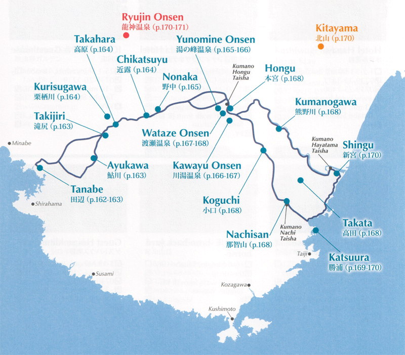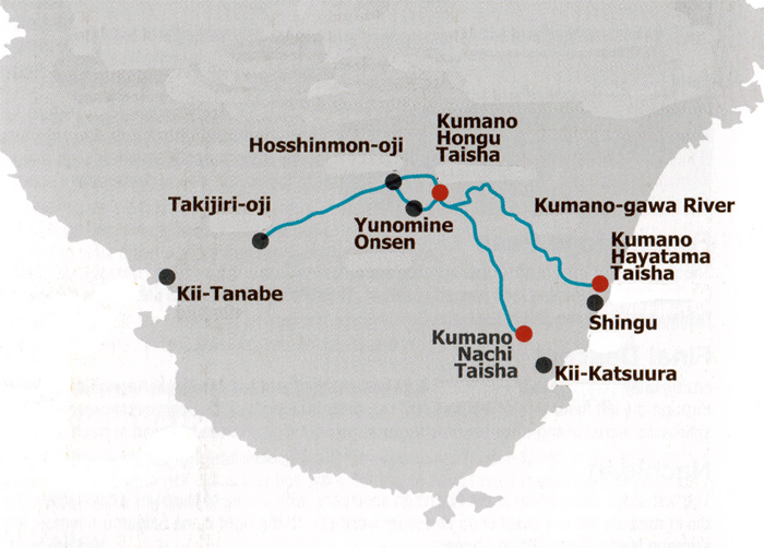 The Nakahechi route starts from Tanabe on the western coast of the Kii Penninsular and traverses east into the mountains towards the Kumano Grand Shrines. It is the most popular route.