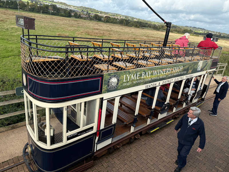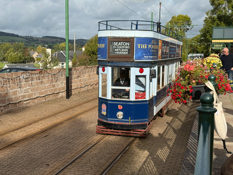 The tramway operates over part of the former Seaton Branch Line, which closed in March 1966. It was established in 1970 by Claude Lane, founder of Modern Electric Tramways Ltd, which had previously operated in Eastbourne between 1954 and 1969. Fourteen tramcars are part of the visitor attraction, which sees over 100,000 visitors per year. All of the tramcars are based on classic British designs, and vary in size between half-scale (1:2) and two thirds-scale (2:3). Most were built from scratch by Lane and/or his successor Allan Gardner, but three were rebuilt from full-size cars which originally ran in LondonBournemouth and Exeter