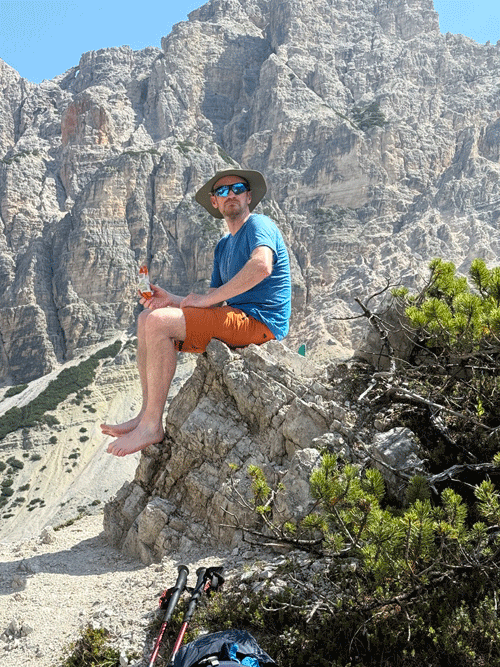 Looking back at Utia Pices Fanes and the stunning mountains behind