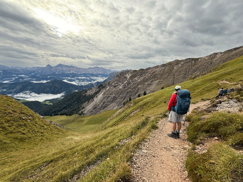 The most dramatic stage yet, today's hike crosses a series of steep, rocky cols with the best scenery so far, passing through the heart of the Puez-Odle group with spectacular views down the valley to the famous peak of the Seceda. A steep scree descent and an exposed section with a short cable handrail provide an enjoyable challenge, before the gradient eases as you cross the high plateau of the Puez massif. Arrive at the remote, family-run Rifugio Puez.