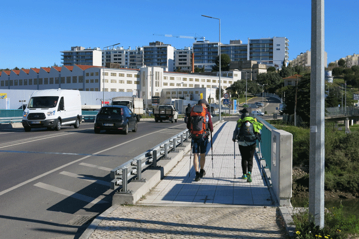 We were joined by Jaroslav Maznov ("Yarus") as we crossed the bridge over the Rio Trancão. We crossed on the right hand side of the bridge and found no signs; we should have crossed over the bridge on the left hand side and picked up signs on the end of the bridge. A pedestrian immediately pointed out that we were going wrong, as well as a car driver honking his horn and pointing!
