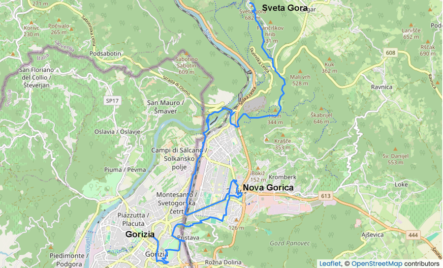 The route takes us through the town centre to Europe Square and right next to the border to the river So?a, across it and along the foothills of Sabotin to the Solkan Bridge with the largest stone arch in the world. In Solkan, the final climb begins to Sveta Gora, the famous pilgrimage centre where, in 1539, Mary appeared to the shepherdess Urška Ferligoj and said to her: "Tell the people to build me a house here and beg me for mercy." The Gorizian Camino ends after 80 kilometres on Sveta Gora, visited by thousands of pilgrims over the centuries and where there is a special energy. In good weather, you can see the whole route from the finish line all the way to its start in Aquileia.